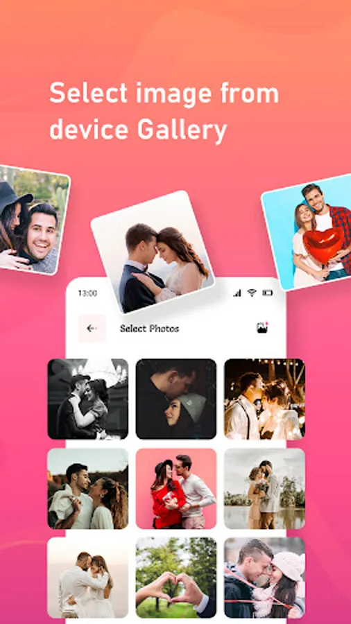 💞 Select your photos from the gallery or can take a photo from the camera.