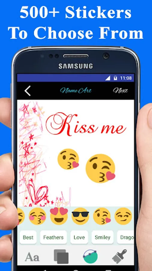 Use 500+ available stickers to create your name pics. Use stickers from our collection like: love stickers, couple, emoji stickers, dragon stickers, heart stickers and much more that helps you generate the stylish text art.