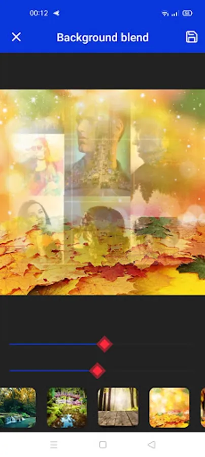 To change the photo temperature, contrast, and brightness, use the image adjustment tools Vintage and Warmth in Photo Blender.