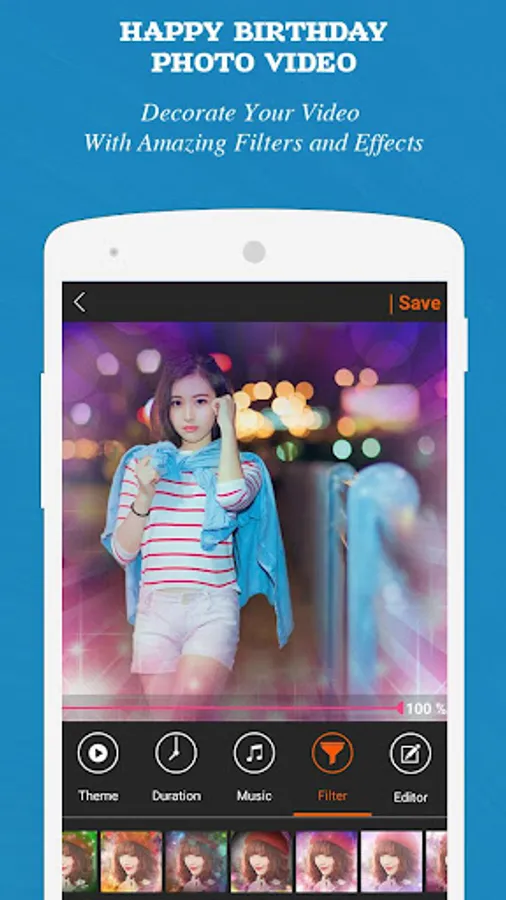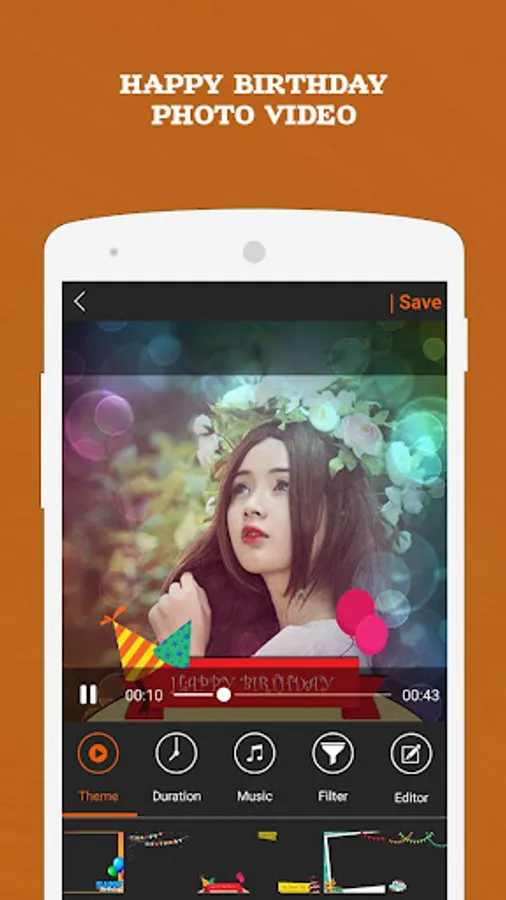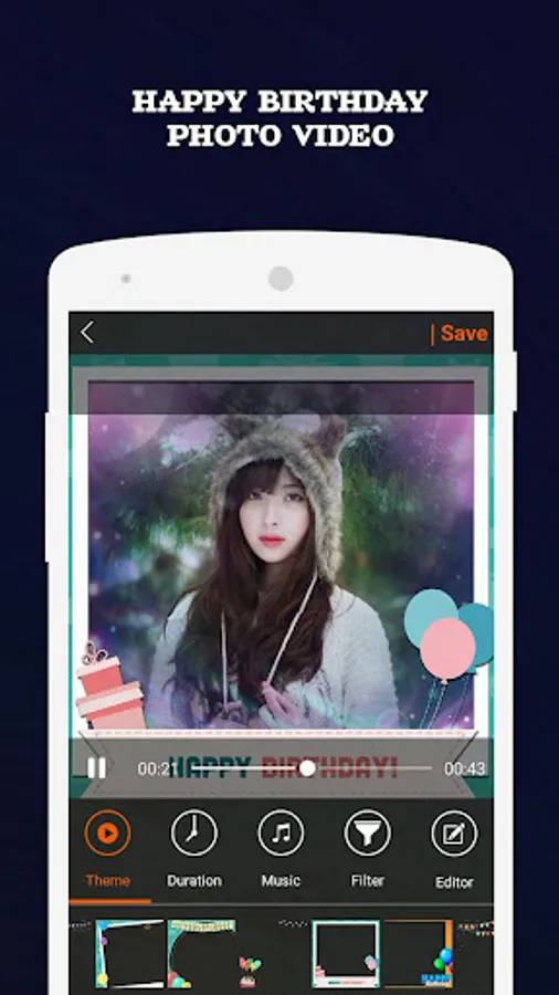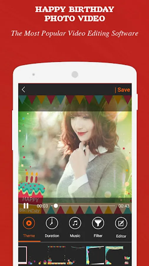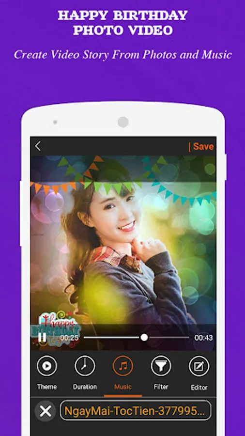 Happy Birthday Photo Video is one of the best video editor, photo slideshow maker and movie editing apps in Android Store. With this app, you can easiest way to create, edit your video story from gallery photos. We are trying to build an all-in-one video editor as: Text, Music, Theme, Effects, Frames, Border... Everything you need to make an awesome video.