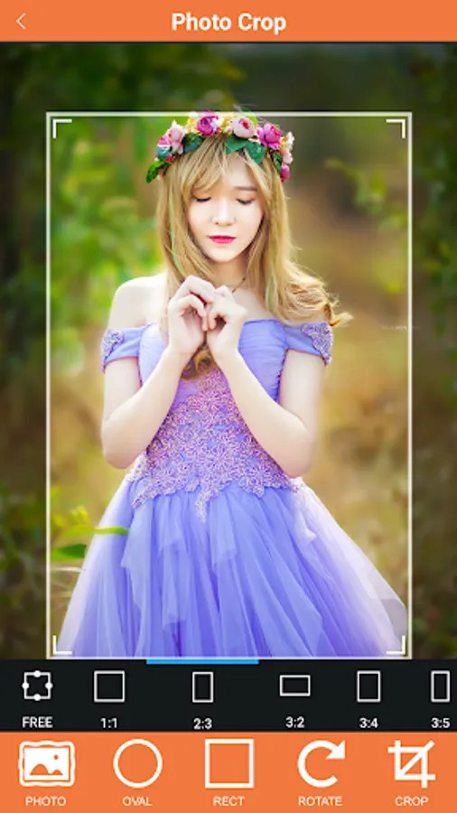 You can crop image by some shapes such as: Circle, Square, Rectangle. And available aspect ratio include: Free, 2:3, 3:4, 16:9...