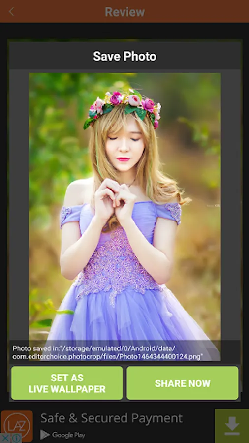 NOTE: The crop images is saved in "Album/Pictures_PhotoCrop" or "File Manager/DCIM/Pictures_PhotoCrop" or “Gallery/Pictures_PhotoCrop"