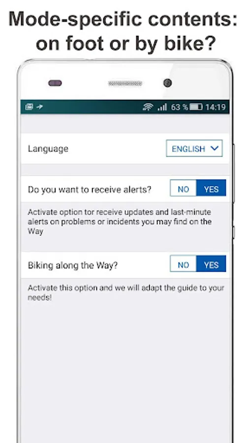 - Whether walking or cycling, you will get the mode-specific information that is relevant to you!