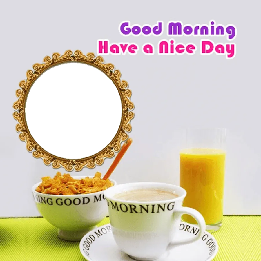 Good Morning Photo frames,images is one of the best and colorful collections of greetigs to say good morning with your friends in social media and online platforms. Decorate this greetings with your photos and quotations to say heartful wishes to your friends. It includes beutiful flowers, early morning sun, clouds and sunrise graphics. Create your own greetings with your creativity to say hai to all.