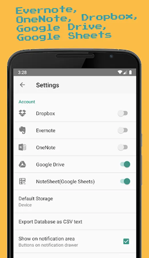 • Send notes directly to Notion, Dropbox, Google Drive, Google Sheets, OneNote or Evernote Clouds with a single button. It's stored in the queue so you don't have to worry about offline uploads.