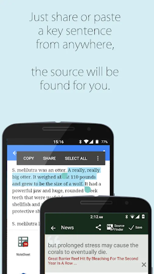- Just share or paste key sentences from anywhere, the source will be found for you.