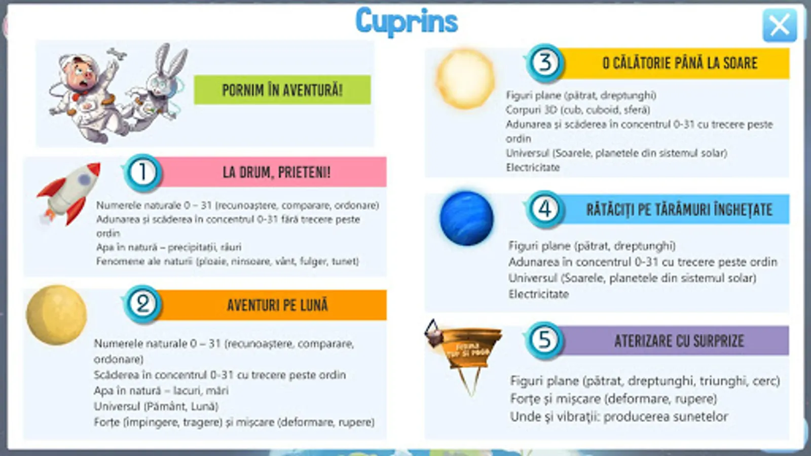 This application is a demo version, including 4 edu-fun games and five educational animations. To view all the content you can buy the full version at the price of 15 lei.