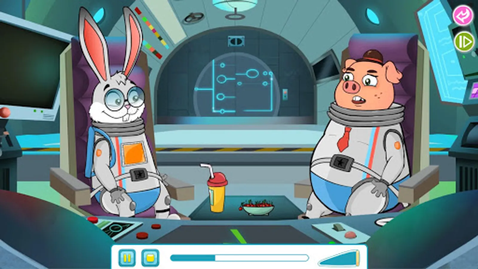 Wanting to be first rabbit that travels in space. Pogo Hop attracts a space adventure full of humor and adventures. The two heroes will explore the Moon, then will travel to the sun. Here will lie precisely Neptune, the planet of ice and, eventually, will reach more of their beloved farm. The application contains 20 fun and educational games and 24 animations, addressing students in preparatory class (5-7 years)