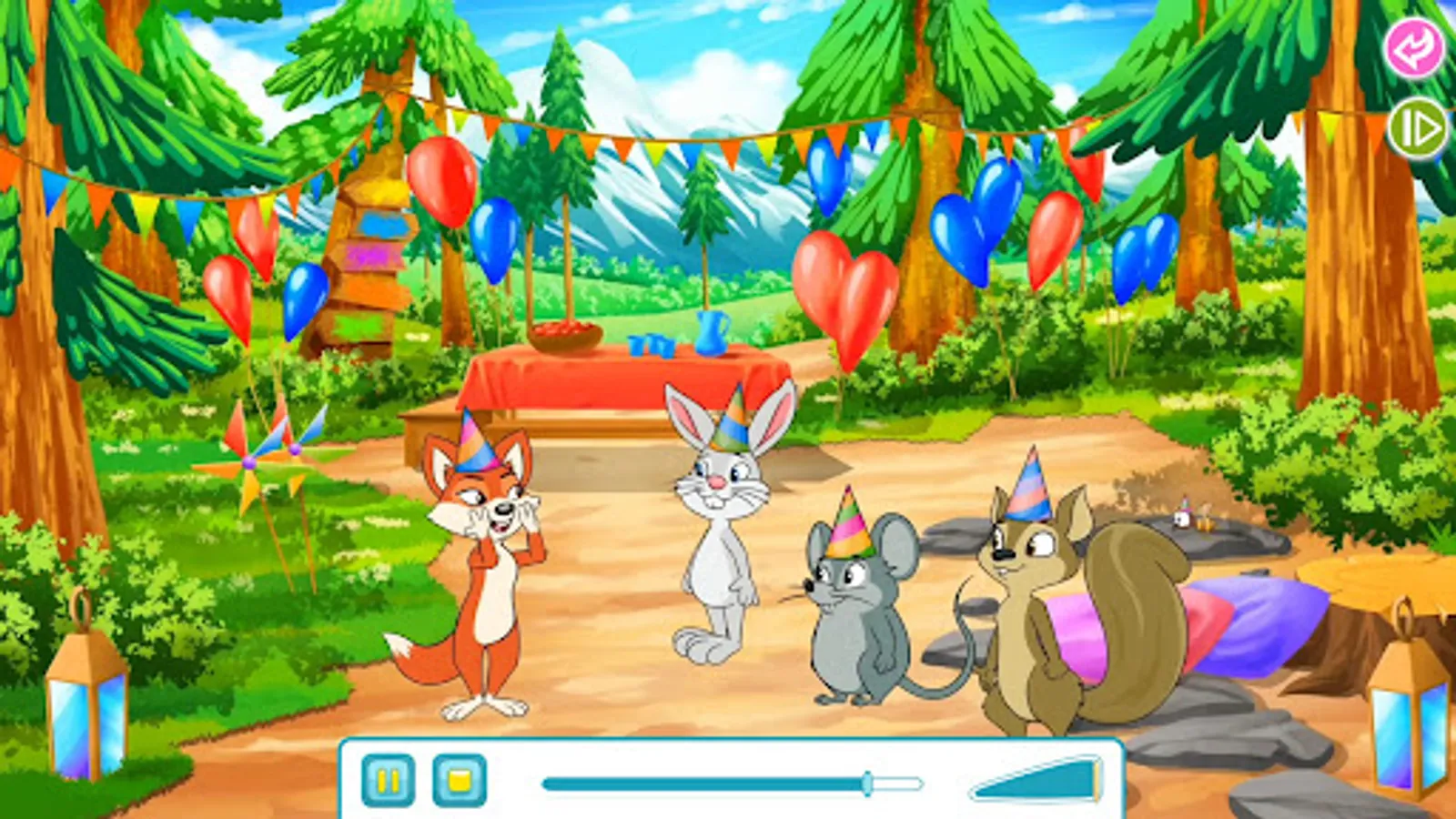The application contains 16 educational cartoon episodes and 16 fun games, with Tup the bunny, Vivi the squirrel, Chit the mouse and Foxi the fox as characters. They will go through funny adventures to the kindergarten, through the orchard and the garden, among the domestic and wild animals.