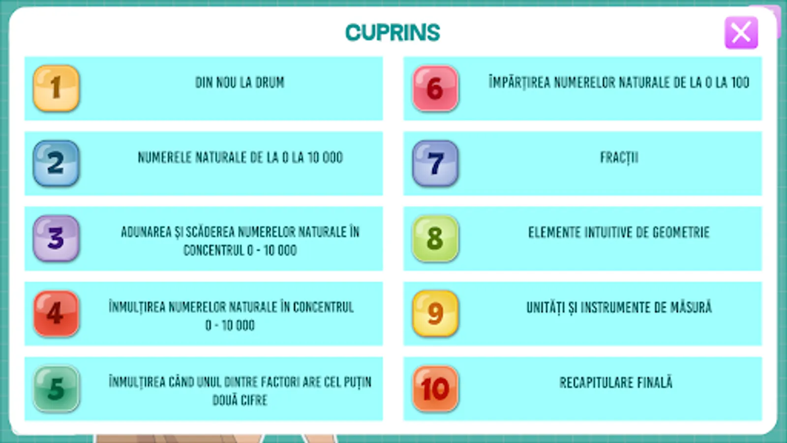 The application includes 47 educational games, aimed at third grade students (9-10 years old). All the contents of the school curriculum are covered.