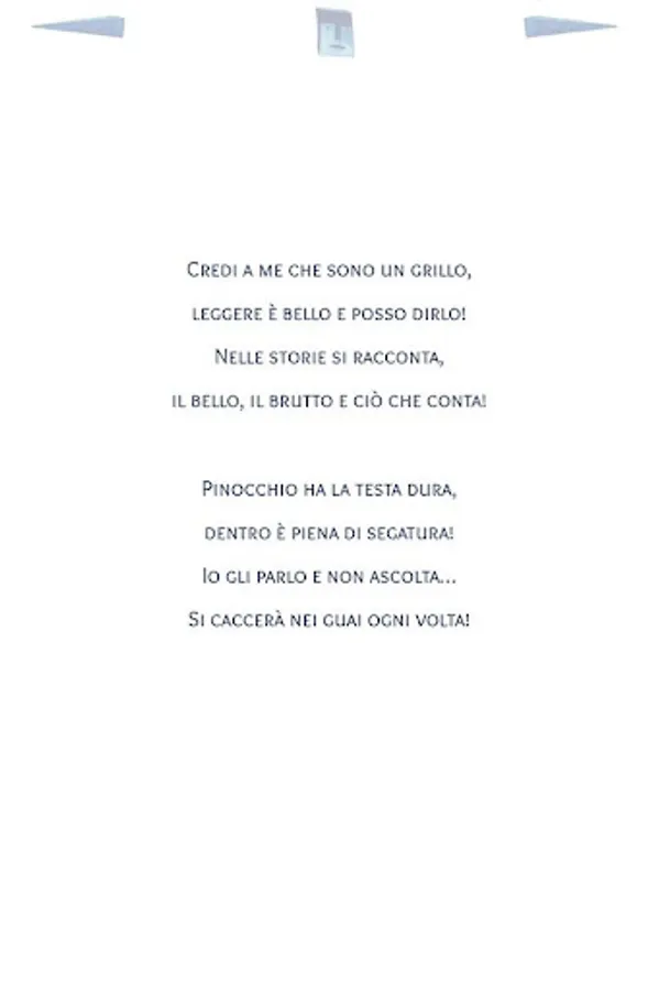 The Book-App "Animals of Pinocchio" develops the fantasy world of Pinocchio by Carlo Collodi through the collection of all the animals in the story, who are over 25! From Grillo Whale, each of them is told in rhyme at the end of a fun puzzle that reveals rhyme narrated by the voice of the Blue Fairy. The spirit of this application offers educational ideas through words that come alive just to educate and entertain, in the discovery of a great classic, our little audience of digital readers.