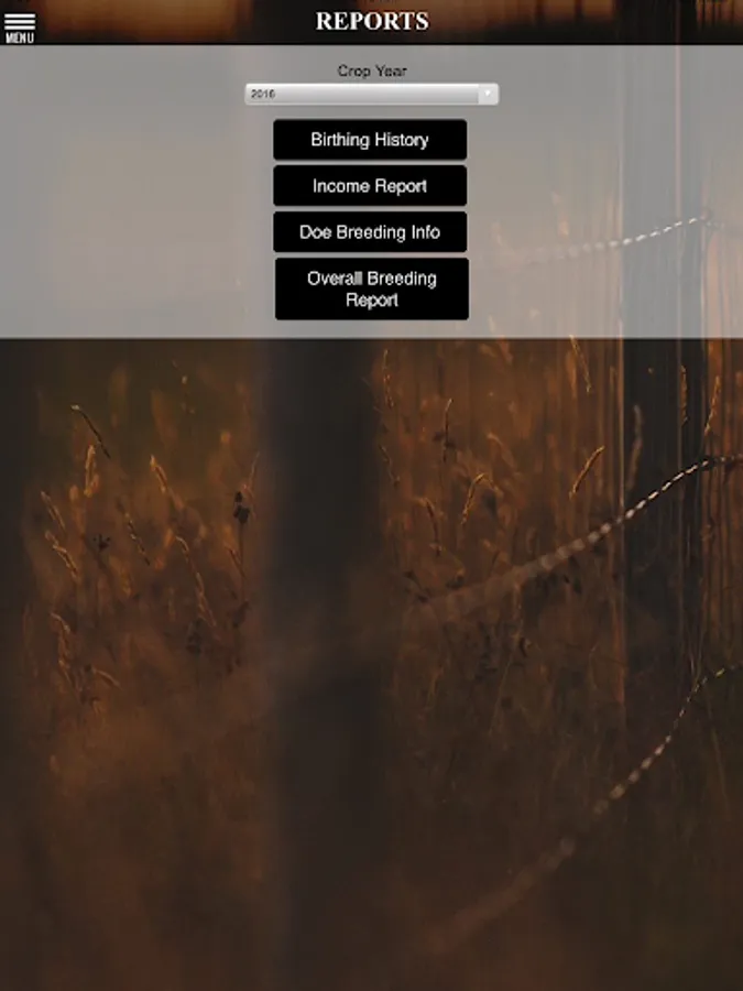Goat Book allows you to track kidding data, and generate reports by bucks or entire kid crop. Goat Book will allow you to enter breeding information on your doe herd and project birthing dates. This application will generate individual doe productivity by keeping annual sale prices for your kid crop. The Semen Tank function allows you to manage your semen inventory.
