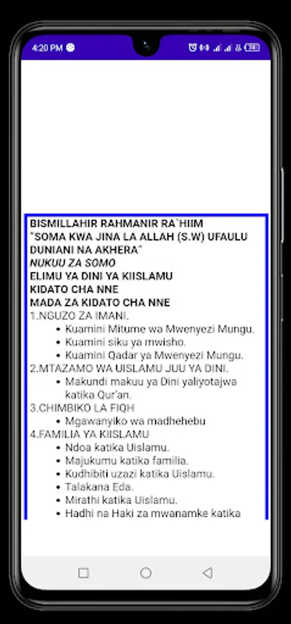 In our madrasa kiganjani program, we have prepared knowledge of Islamic Religious Education. Here you will have the opportunity to learn a lot about the Islamic religion and its rituals.