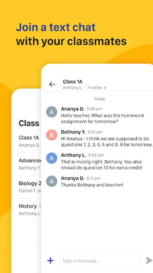 You can also participate in a chat community of your classmates, post class-related questions, get homework advice, share tips and more - available 24/7. When you have access to your classmates you’ll never fall behind, and always have a community of peers available to help.