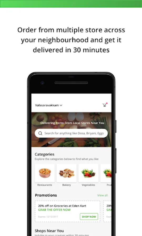 You can order from a variety of categories ranging from restaurant food, groceries, vegetables, fruits, sea food and meat across your neighborhood stores.