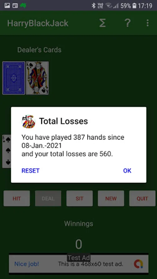 Learn to play BlackJack and develop a winning system before you go to the casino. Actually, this app will show you that your winning system is doomed to failure and that the casino always wins. If you disagree, install the app and see if you can maintain you winnings over an extended period of time. Somehow, I don't think you'll do it.