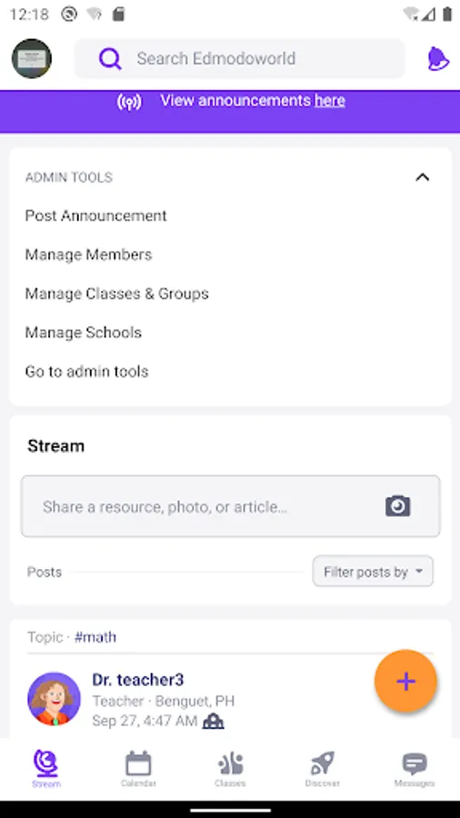 Edmodoworld empowers teachers to connect and extend their class outside of school. It includes communication tools to facilitate posts and messages, quiz creation, and the sharing of content and digital assignments. Teachers can connect with peers and find inspiration for their next lesson by exploring the Discover area, browsing Spotlight, or following hashtags in edmodoworld.