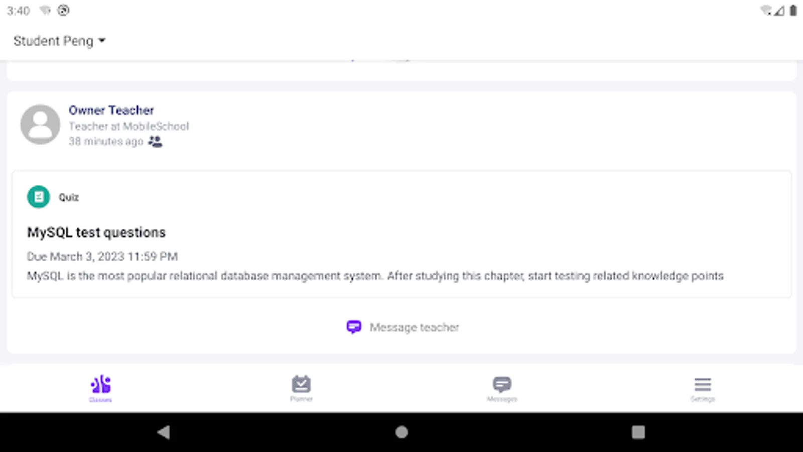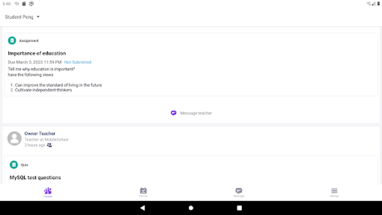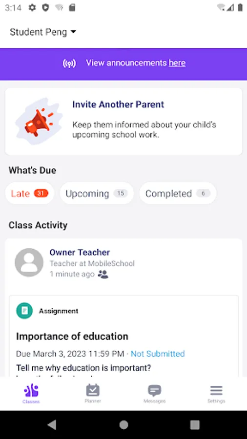 Parents are part of the child's learning experience within edmodoworld. They can receive automatic updates in real time, so they don't have to wait for their child to show them their grades. Instead, they can see assignments and quiz scores when their child's teacher grades them. In addition, parents can stay in touch with teachers. With edmodoworld, it is easy for parents to send their child's teachers a direct message or follow class updates, and they can track their child's progress wherever they are with the edmodoworld Parent app.