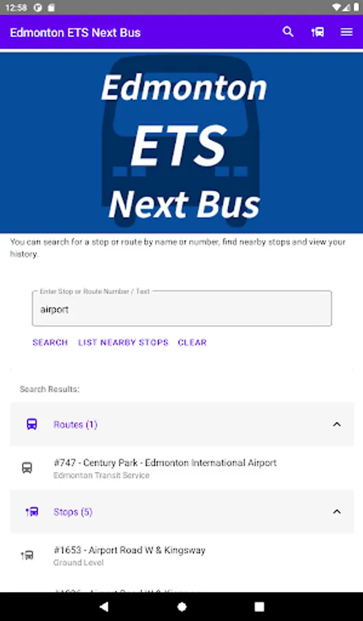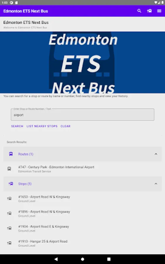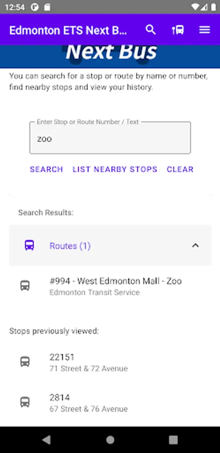 You can also search your stop number or route name in the home screen or using the Search button.