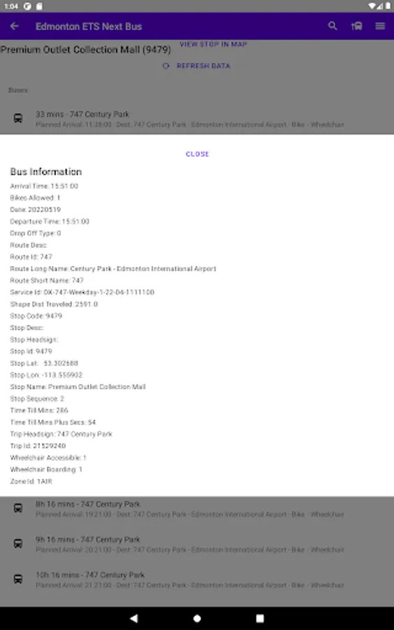 You can get details on the bus by clicking on it.