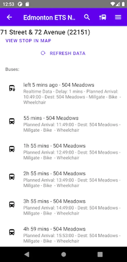 Data is in real-time from Edmonton's Open Data GTFS (Transit Feed System). When real-time data is not available, it will show scheduled data.