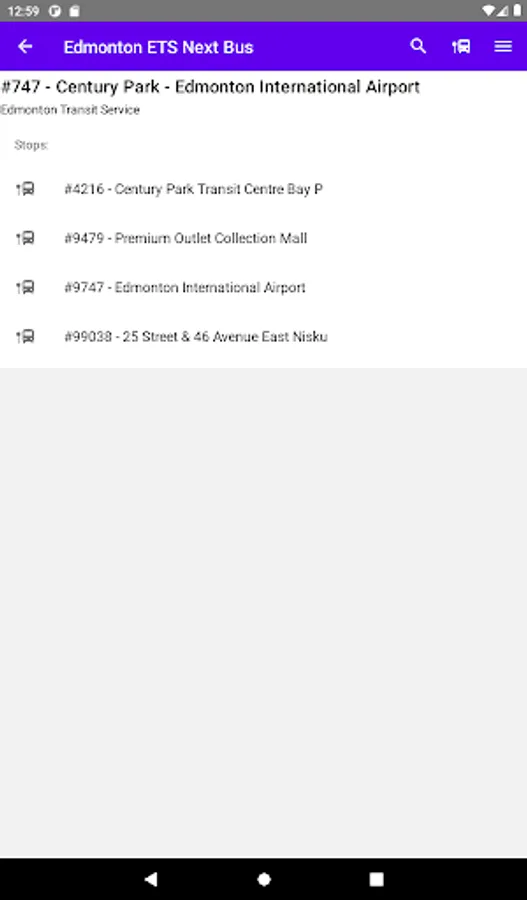 The Edmonton ETS Next Bus App will list all busses at a stop including when they are arriving and where they are going.