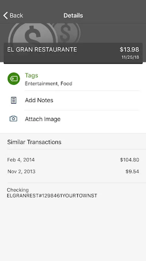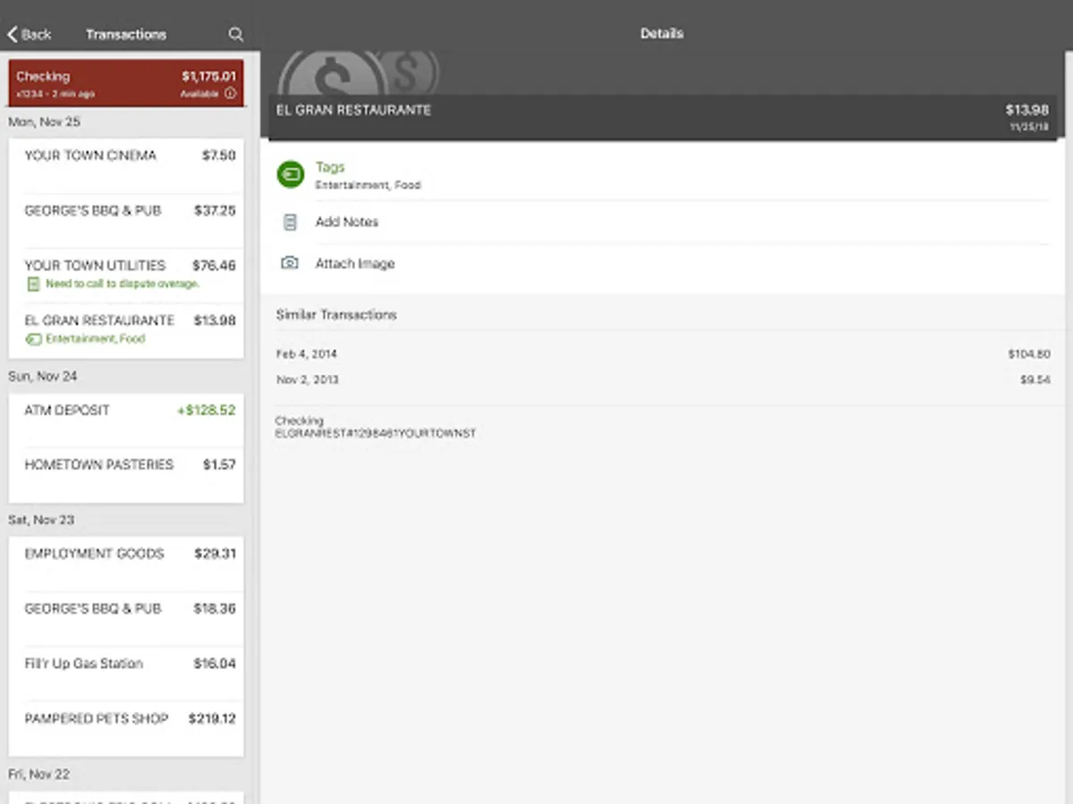 - Keep your transactions organized by allowing you to add tags, notes and photos of receipts and checks.