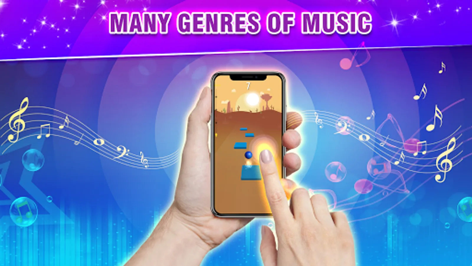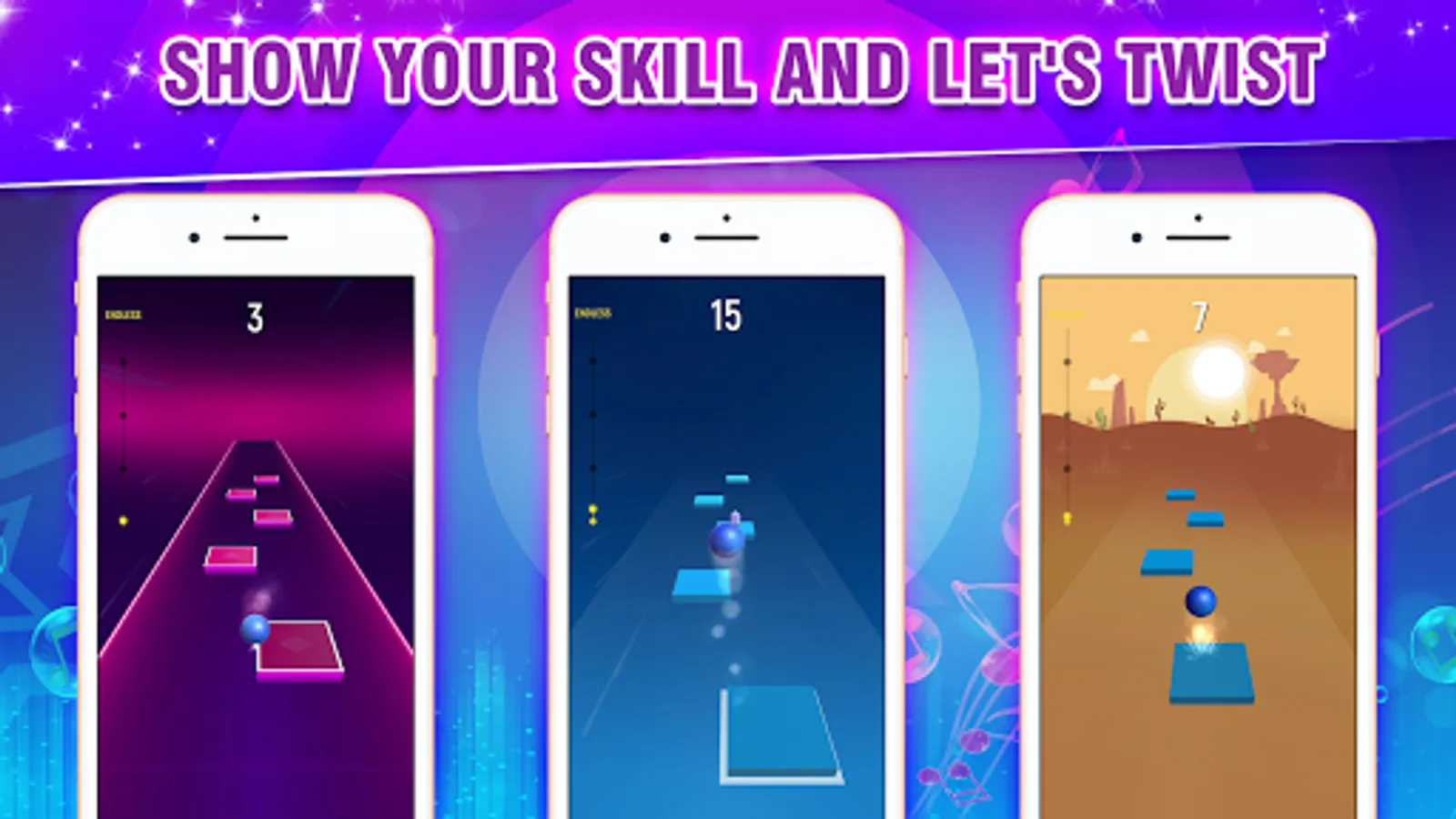 The Ball will jump on the Tiles. Listen to the magic beat, follow the rhythm and use your musical reflexes to guide the ball from tiles to tiles.