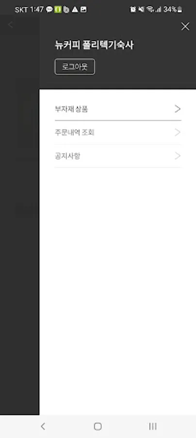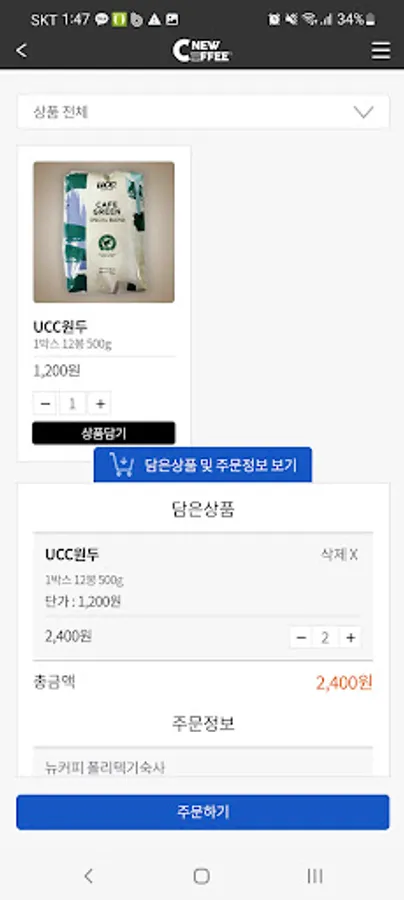 뉴커피 부자재 발주 Screenshots