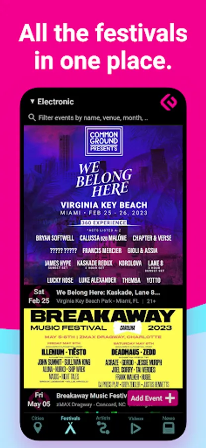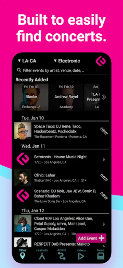 Whether you like to travel or stay local, we'll help you find great events for all electronic genres such as House, Techno, Dubstep, Trance, Trap, Drum & Bass to name a few...