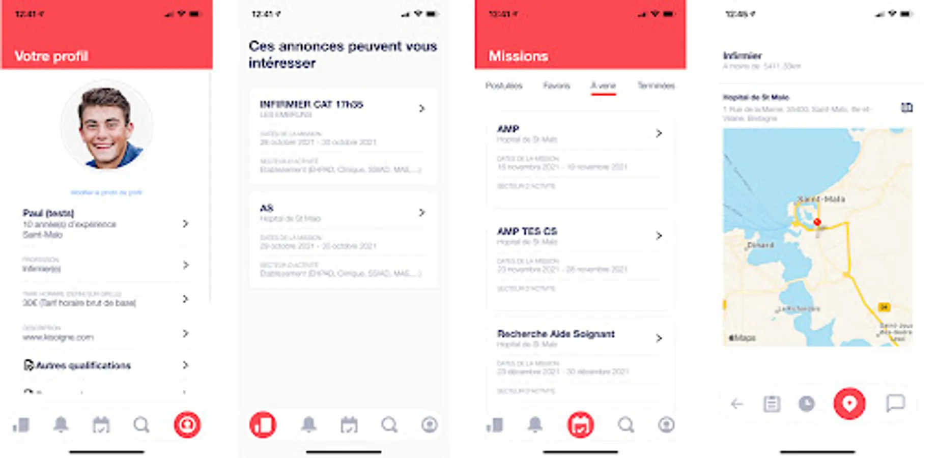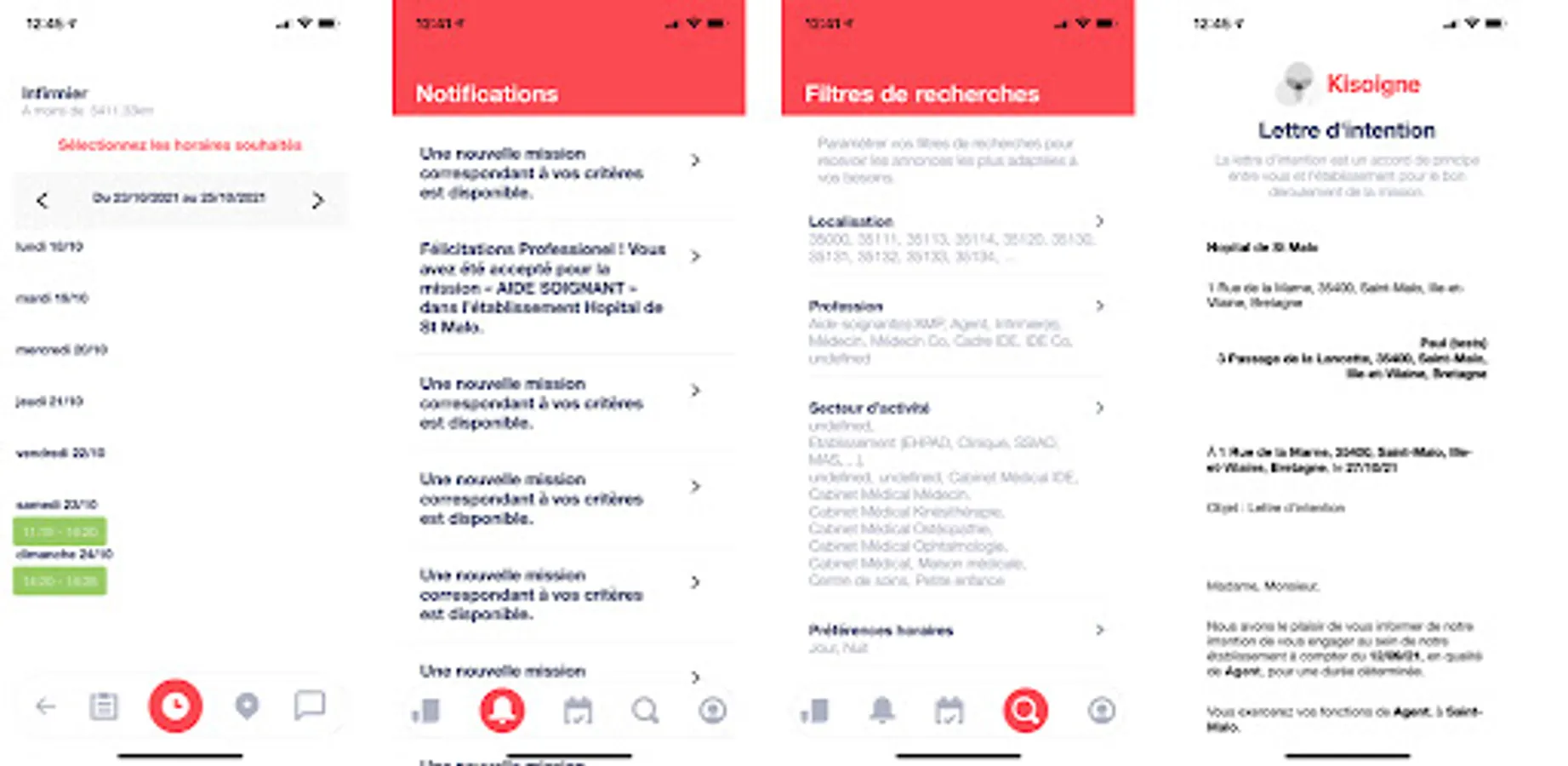 The caregivers register on KISOIGNE, they search for missions, specifying through filters, the function, the place sought.
