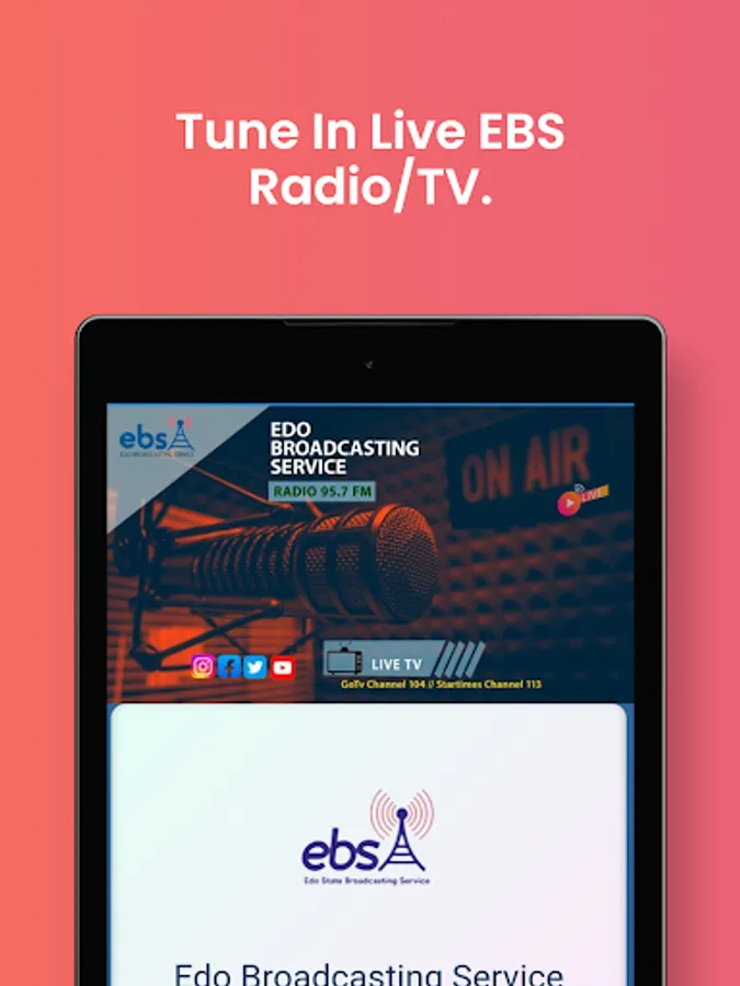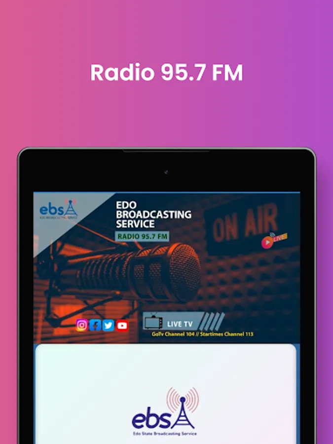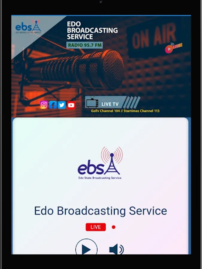 EBS Radio & TV transmits Live on 95.7FM Benin City, Edo State Nigeria. Live Stream of current happenings