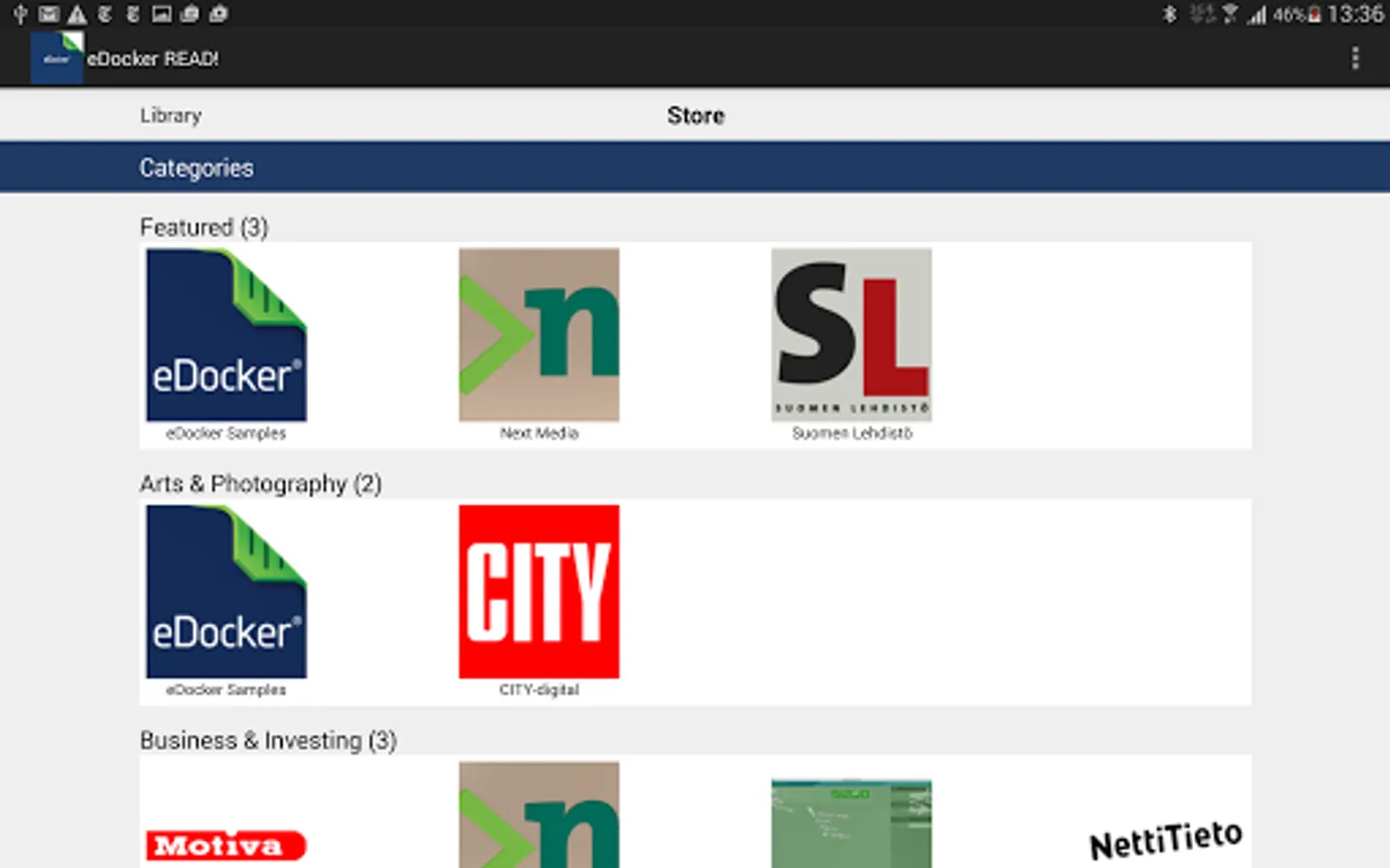 eDocker READ! is an application designed for reading and archiving digital publications. eDocker READ! supports downloading of publications for offline use.