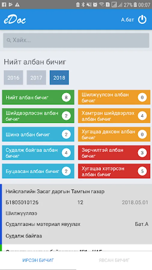 This program is the Capital Entities use of archive records system "(" https://edoc.ub.gov.mn) on mobile phone