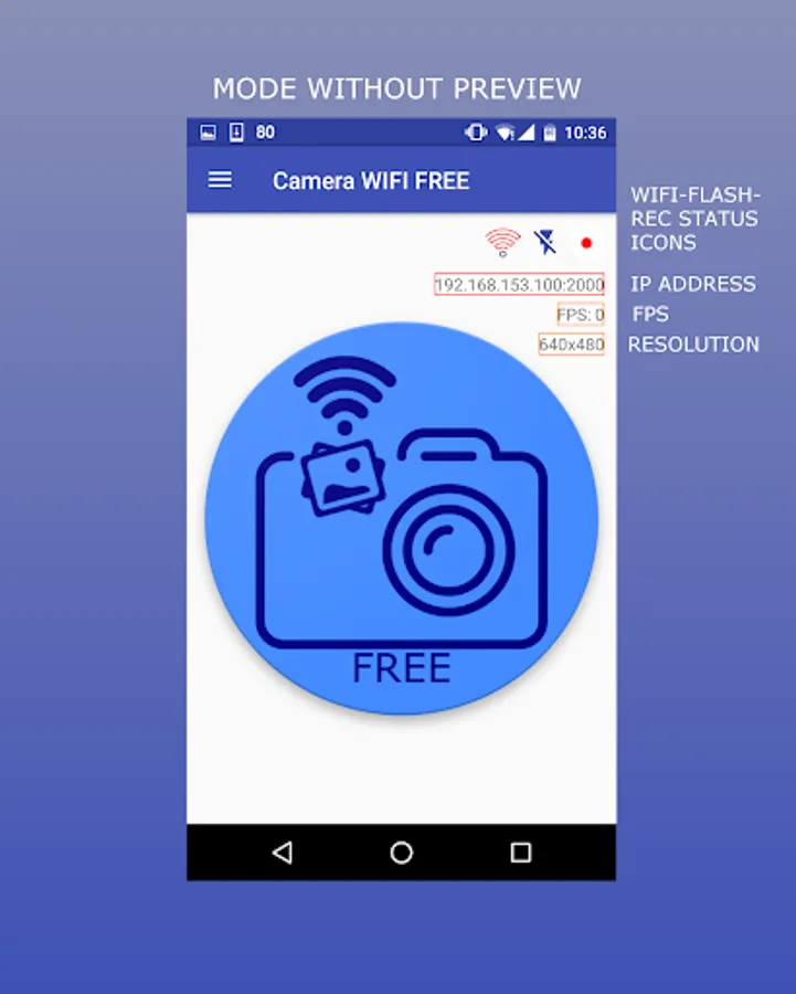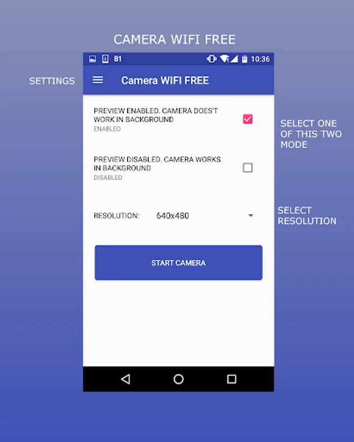 - preview disabled (the images stream doesn’t stop when the application is in background but you can't show on phone the captured images)