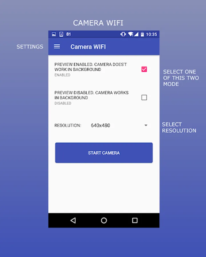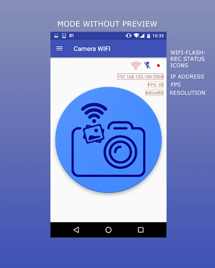 - preview disabled (the images stream doesn’t stop when the application is in background but you can't show on phone the captured images)