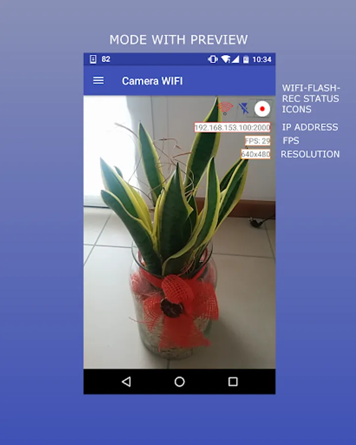 - preview enabled (you can show images captured on phone but the stream stop when you put the application in background)