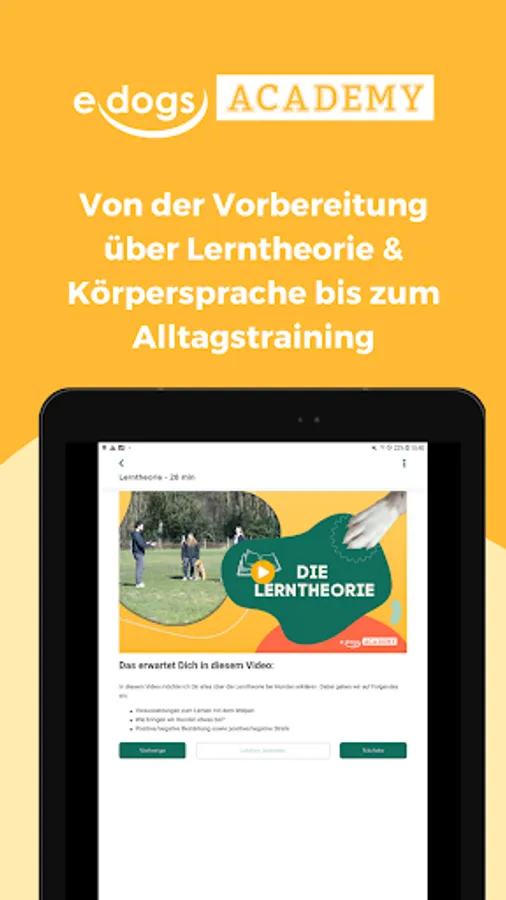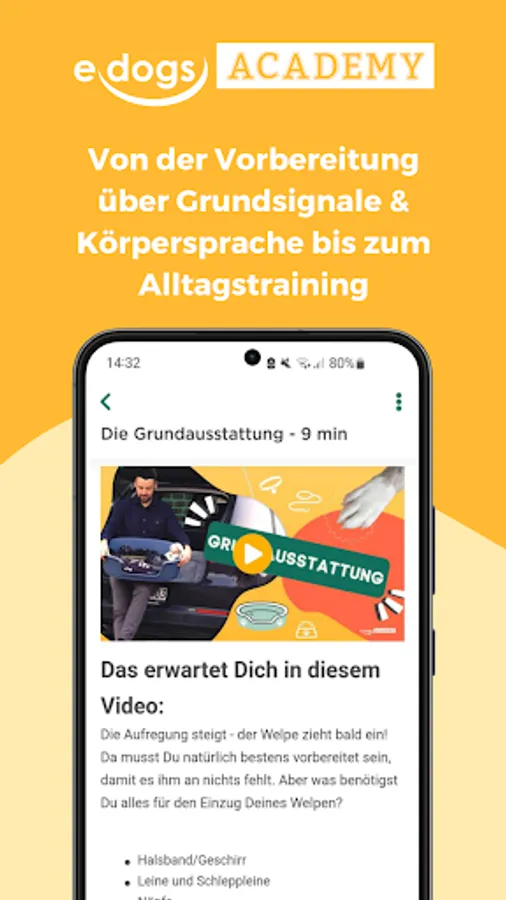 With over 30 exciting videos in 11 lessons, you will learn to master dog training. In addition to videos, you will find other great learning and accompanying materials with a focus on the holistic and, in particular, species-appropriate upbringing of your furry friend.