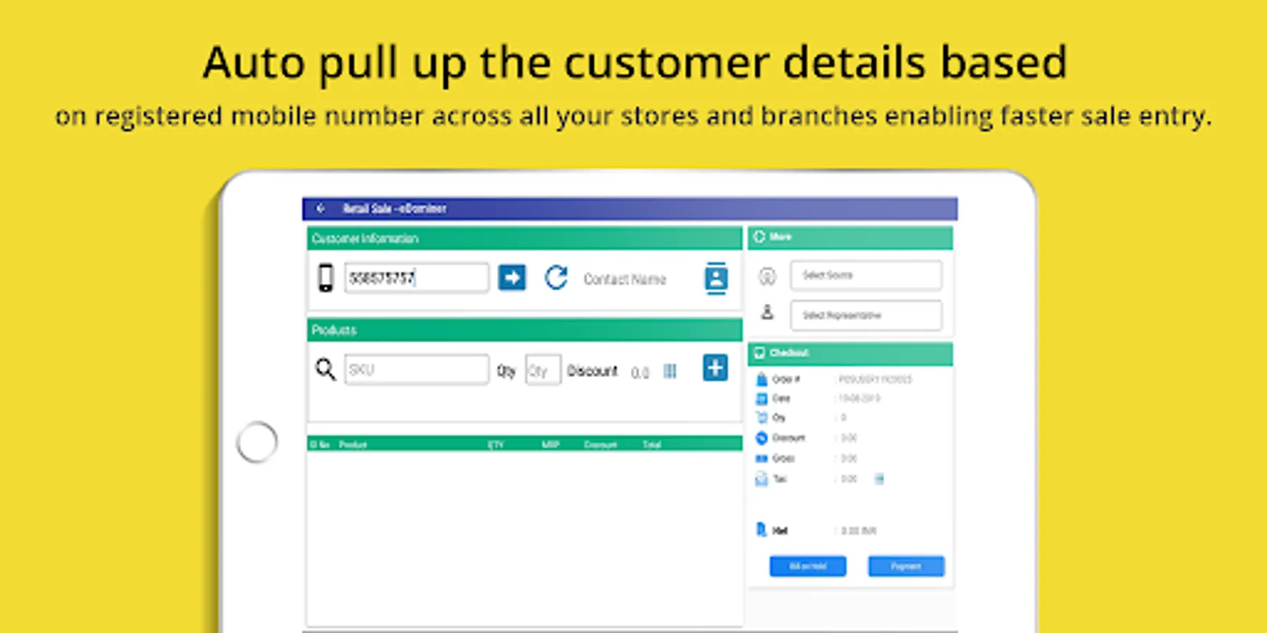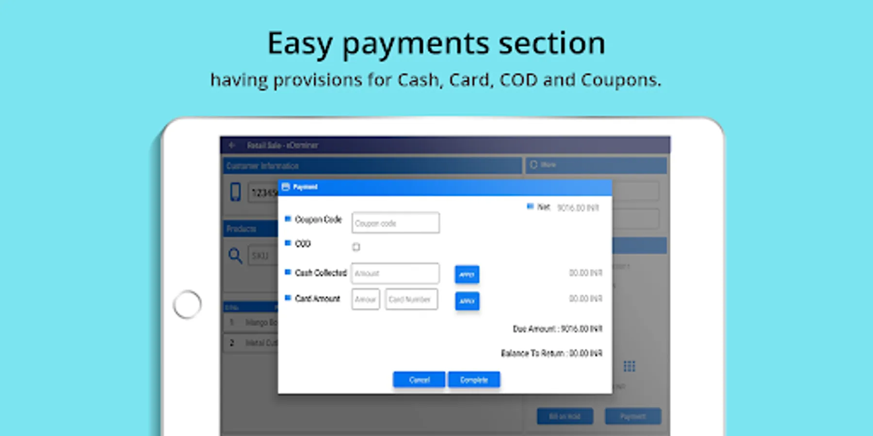 Expand ERP android Retail POS application for giving your business a modern outlook. The simple and self explanatory user interface enables quick POS activities on the move making a more personalized and modern approach of business possible. No special training required to use this application nor any need of maintaining expensive POS machines and servers at your store. A simple android tablet of your choice with basic required specifications and Expand ERP registered user license is all you need to begin your POS activities.