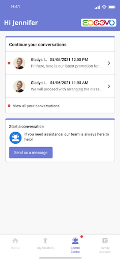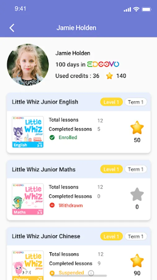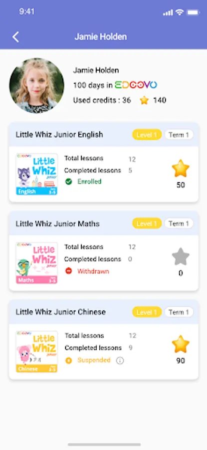 EDOOVO parent mobile application allows parents to view course information, lesson schedules and learning progress.