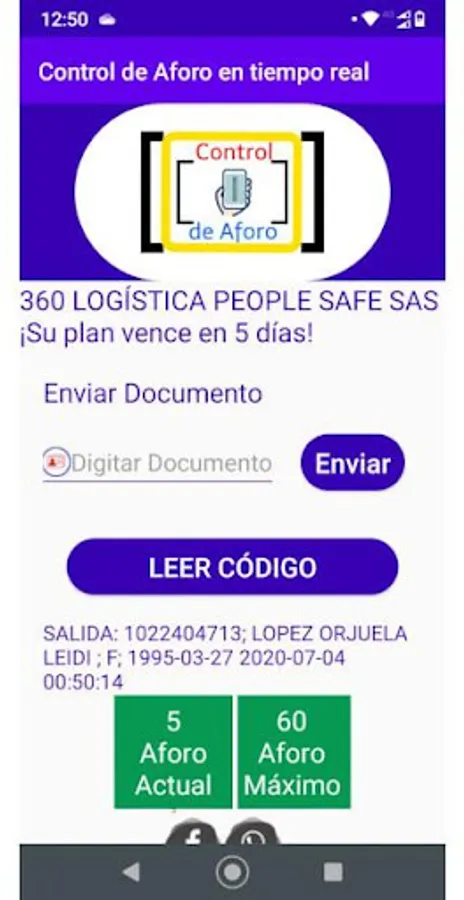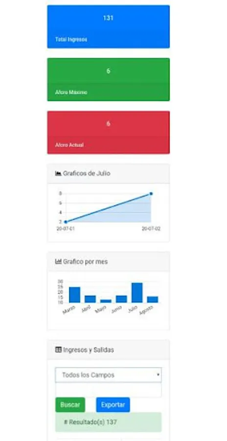 Control of Online Capacity is connected to a web panel in controldeaforo.online where you can see the income and exits of people, graphs and be able to generate reports,