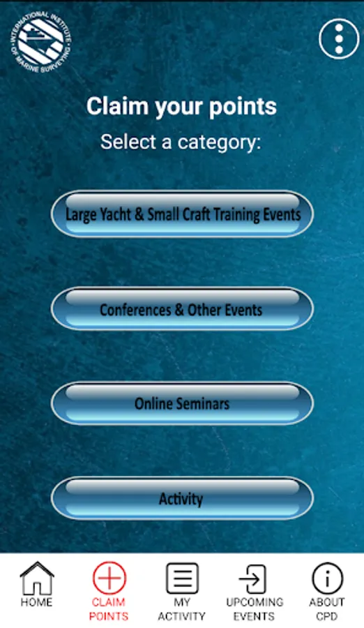 - At the end of the event, or on your return home, you can open the app to make a claim for 5 points for the training event from the drop down menu. You submit your claim.