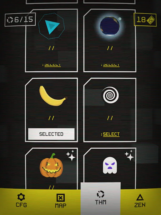 Play the STORY mode levels to uncover the mistery, or use the ZEN mode to practice your skills and collect Shards that allow to unlock many fun customizations and powerups.