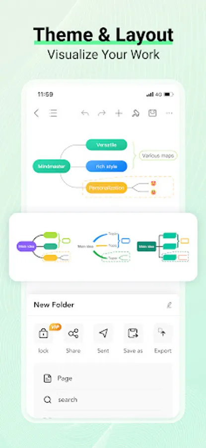 >Display contents in various layouts, such as mind maps, organizational charts, fishbone diagrams, timelines, etc.