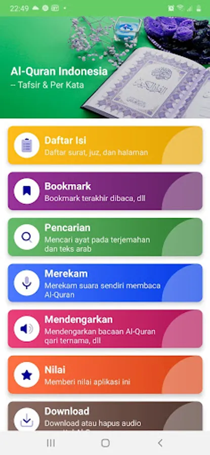 The free and complete Indonesian Al-Quran makes it easy to learn the contents of the Al-Quran equipped with the following features: