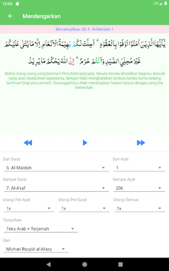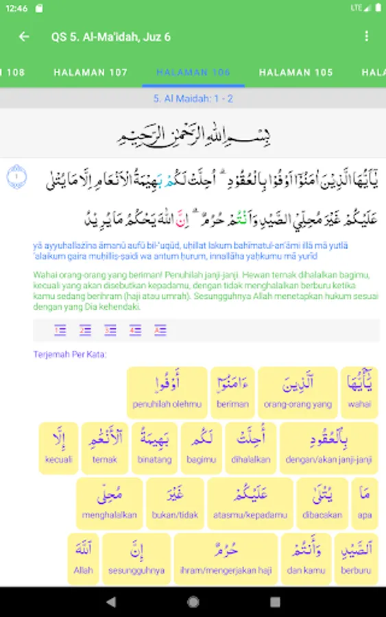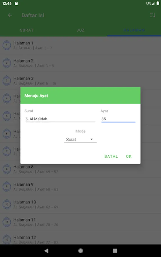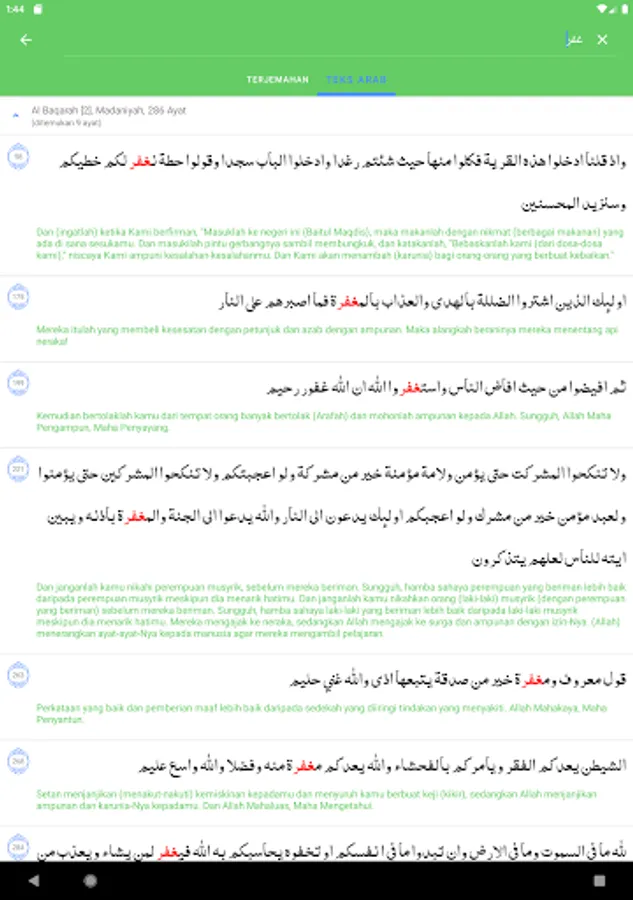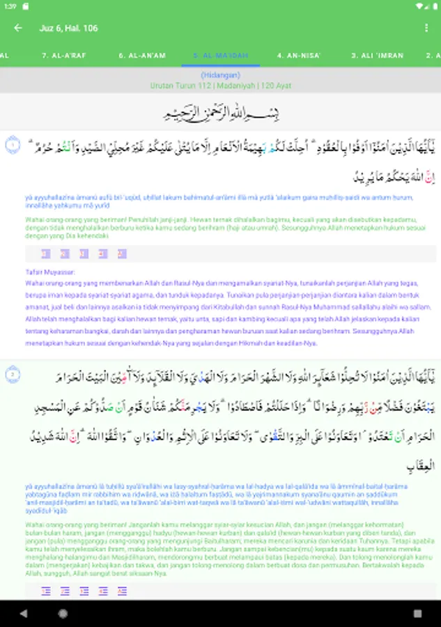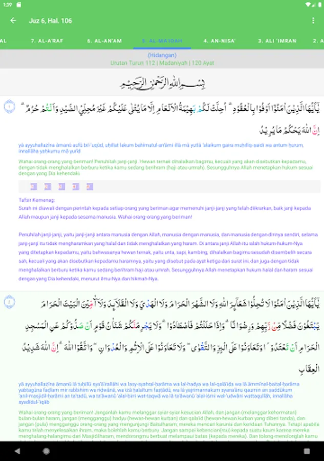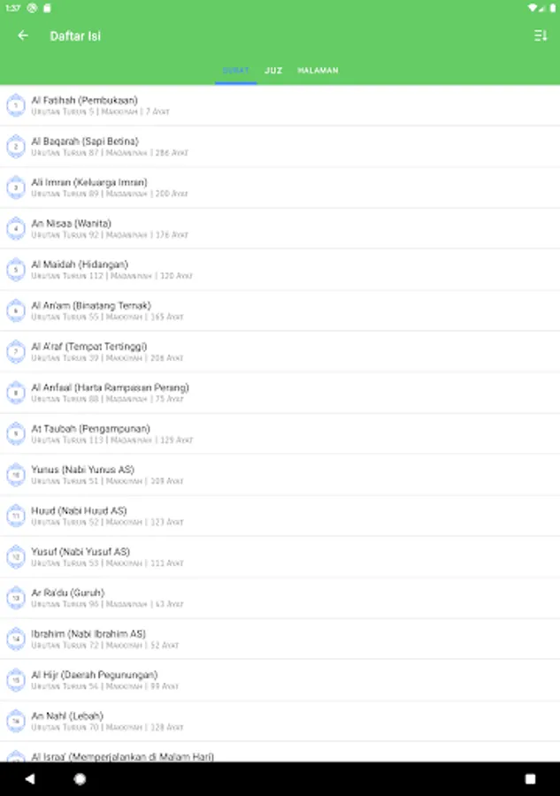 - The display of the Mushaf can be selected from the Indonesian Mushaf or the Medina Mushaf