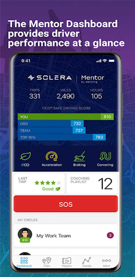 Award-winning Mentor℠ by eDriving identifies and remediates risky driver behavior with their FICO® Safe Driving Score, eLearning, coaching, and gamification, while recognizing safe, eco-friendly driving with rewards. Integrated Automatic Crash Detection and Personal SOS features powered by Sfara and Bosch trigger emergency help when needed most. All of this is delivered from a privacy-first, data-secure platform and supported with unsurpassed professional services.