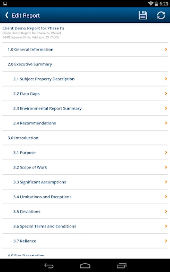 - Use the app for Phase Is, PCAs, Transaction Screens, Mold, Asbestos or any other due diligence report type