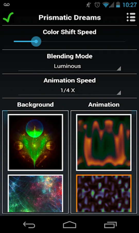 - Blending Mode : Control how your animation blends with your background. Options are "luminous" and "phantom" modes.