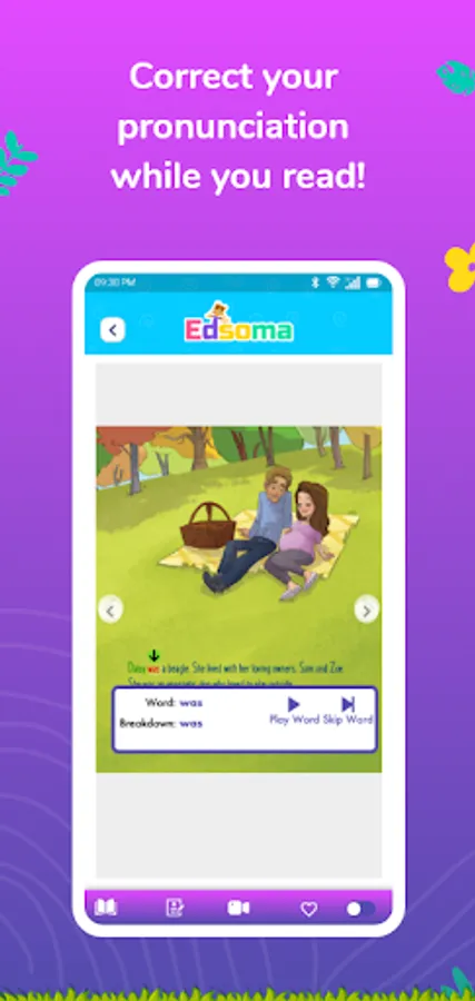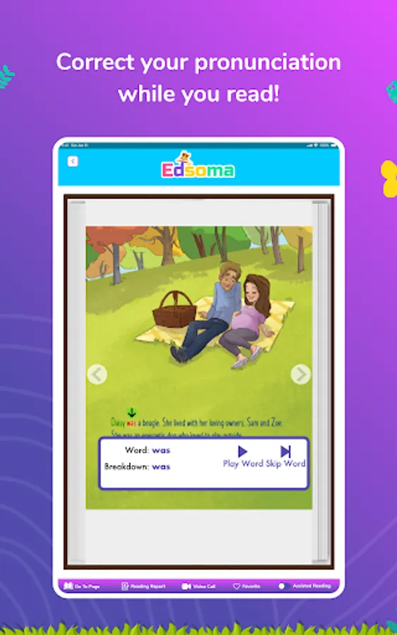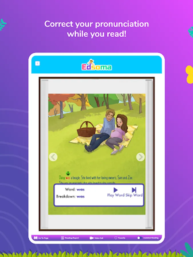 Edsoma app is an AI reading assistant that helps children improve their literacy skills and reading abilities. When you start reading a book, Edsoma’s proprietary patent pending voice reading recognition engine follows you and provides correct pronunciation of each word for every book in our library.